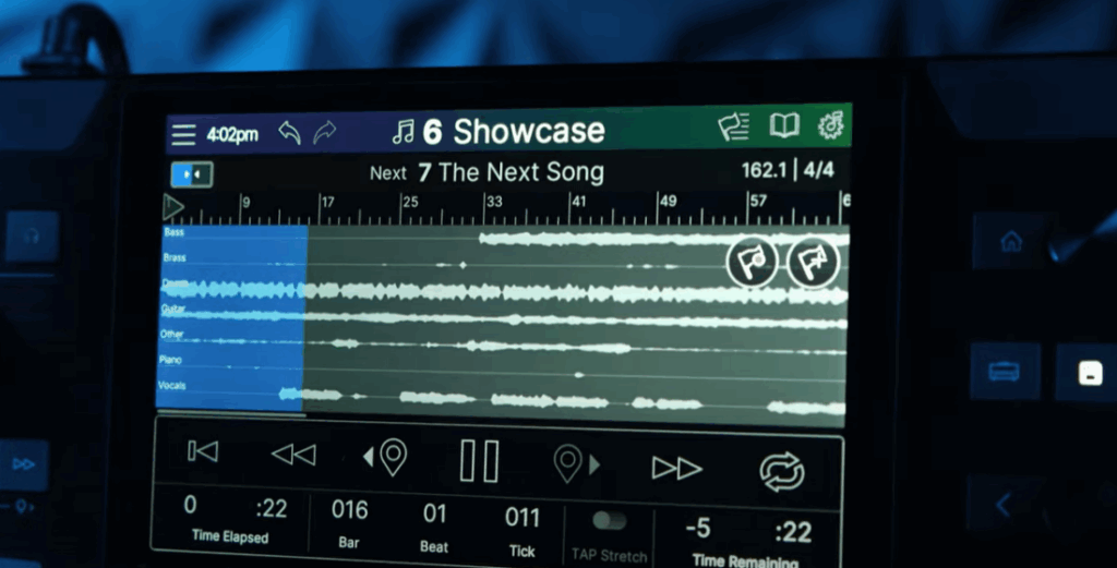 新開発のライブ自動化エンジン「Showcase」は、ライブで活躍するギタリストにとって非常に嬉しい機能満載です。Helix Stadiumに楽曲のオーディオファイルをロードし、そのタイムラインに合わせて、プリセットの切り替え、エフェクトのON/OFF、パラメーターの変化といったあらゆる操作を自動化できる機能です。